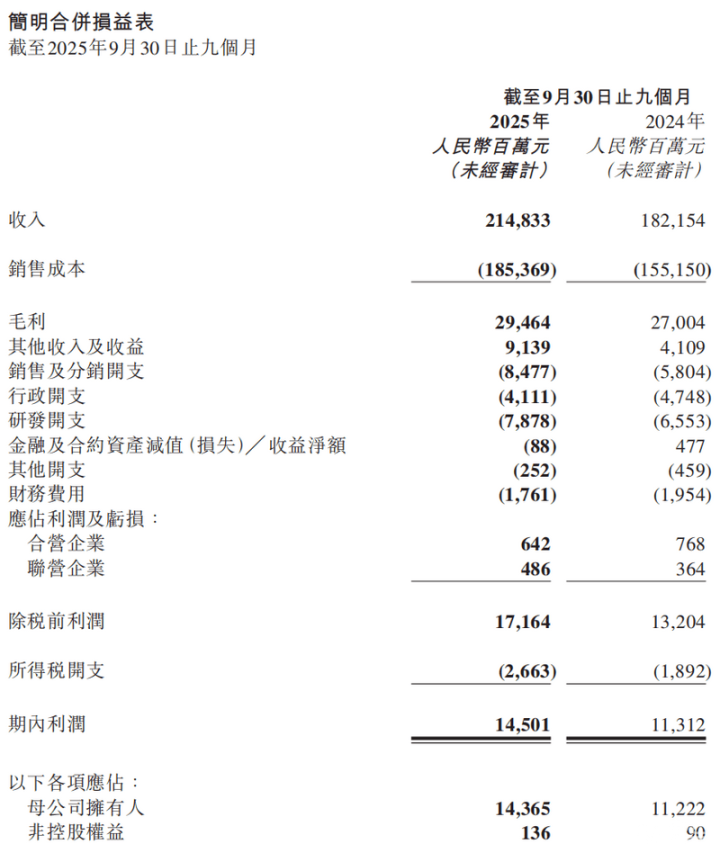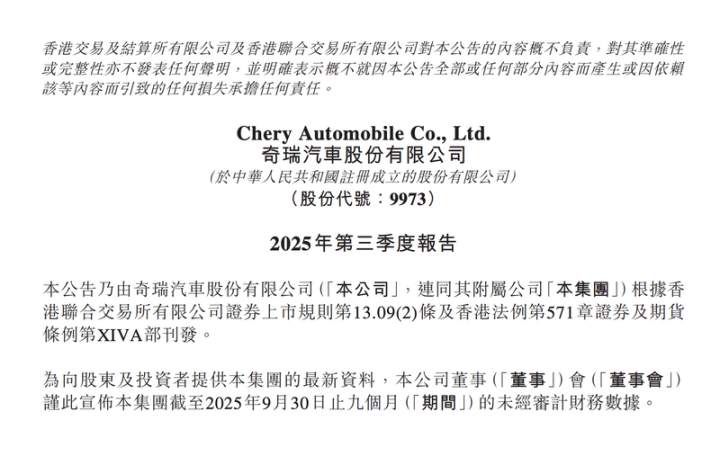 易车讯10月31日,奇瑞汽车发布公告,2025年前三季度营收2148.33亿元,去年同期为1821.54亿元;净利润为143.65亿元,去年同期为112.22亿元。